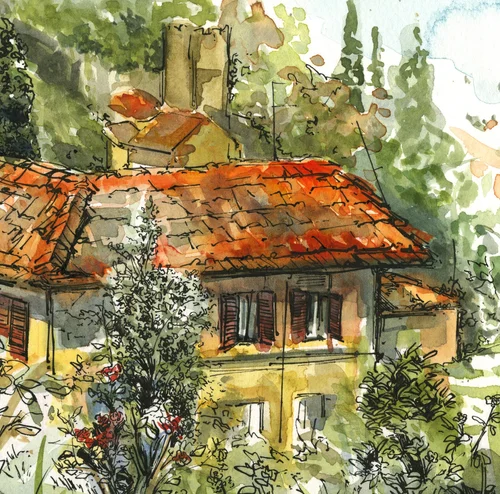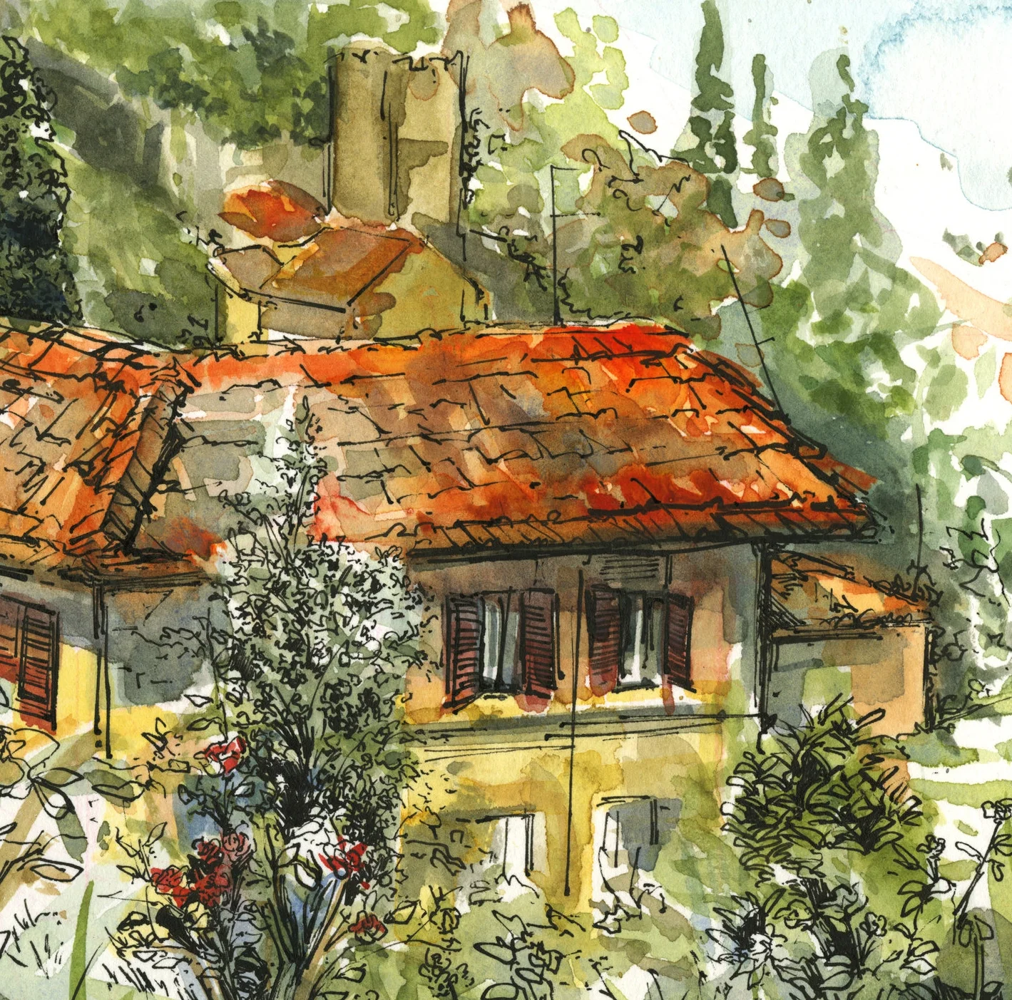 Two On Site paintings from Florence, Italy (Florence Market and Piazza Michelangelo). Watercolour and ink (traditional).